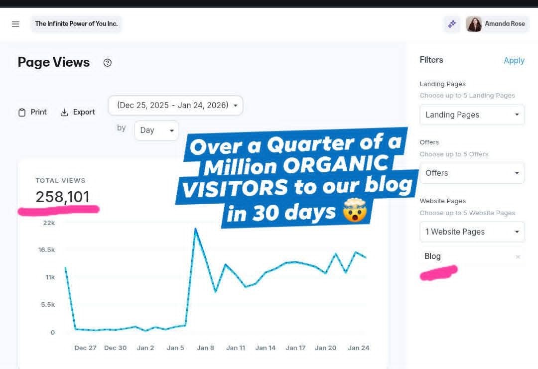 With OVER 150,000 organic visitors each month, The Infinite Power of You Blog is a great place to establish your brand!